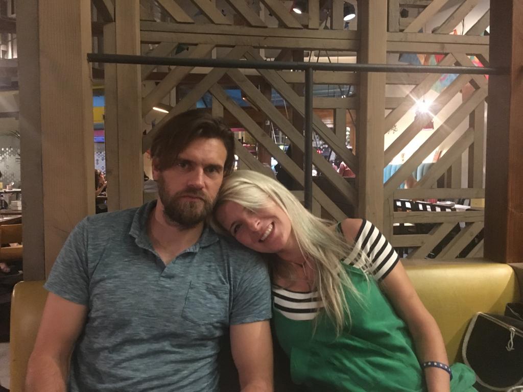 With Robb and Emma in London restaurant, autumn 2018 (Come on Robb, smile!)
