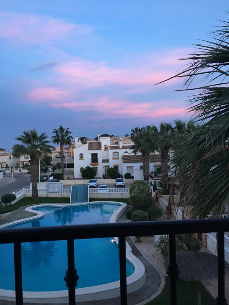 View from Debbie and Tom’s Spanish apartment balcony as darkness falls on an October evening whilst enjoying a gin and tonic!